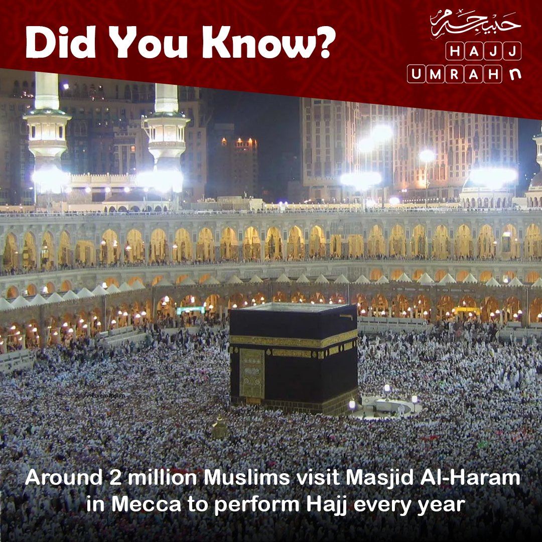 Every year, approximately two million Muslims from around the world travel to Makkah to perform Hajj at Masjid al-Haram. Hajj is the fifth pillar of Islam and is obligatory once in a lifetime for every financially and physically capable Muslim. This sacred pilgrimage takes place during the Islamic month of Dhul-Hijjah and represents unity, devotion, equality, and submission to Allah.